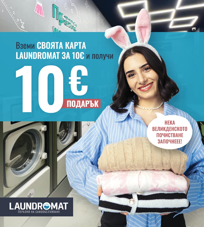 ВЗЕМИ СВОЯТА КАРТА LAUNDROMAT ЗА 10€ И ПОЛУЧИ ОЩЕ 10€